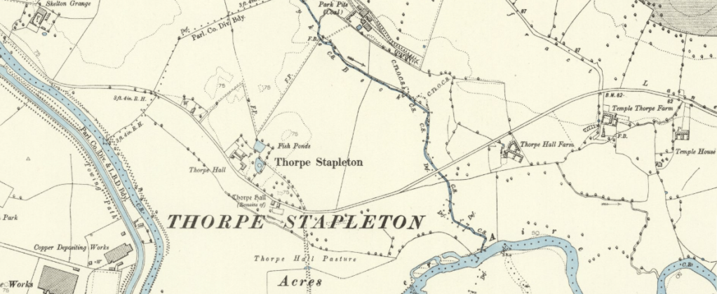 1891 map of the area showing Temple Thorpe farm (centre,right) Templars would often indicate buildings under their protection – in this area this was often subsequently with a two-barred cross. It seems like some of the tax privileges of the Templars continued after their demise – which led to crosses still being on some buildings even now.